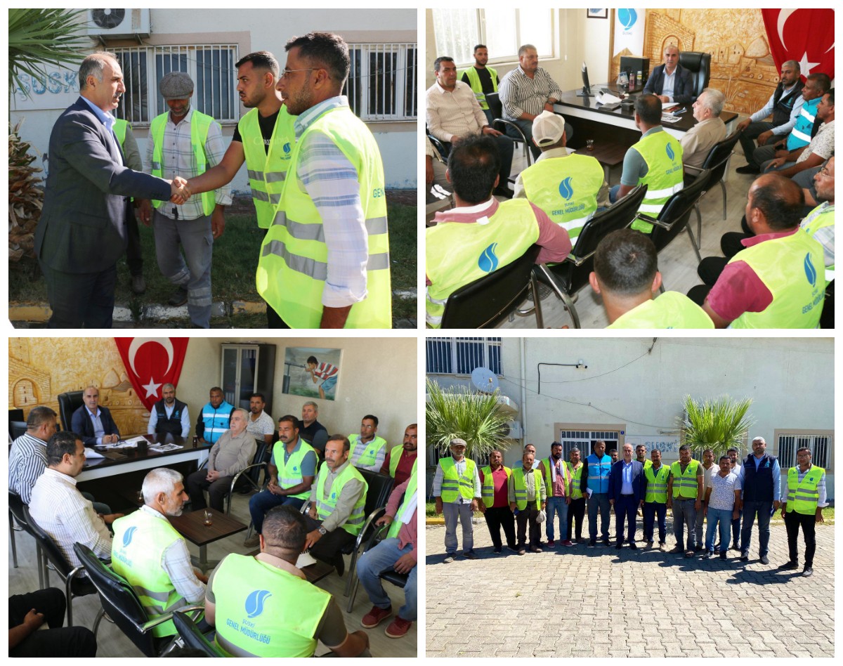 ŞUSKİ Genel Müdürümüz Emin İZOL, ŞUSKİ Harran ilçe birimini ziyaret ederek sahada yürütülen çalışmalarla ilgili görevli personellerden son durum hakkında bilgi aldılar.