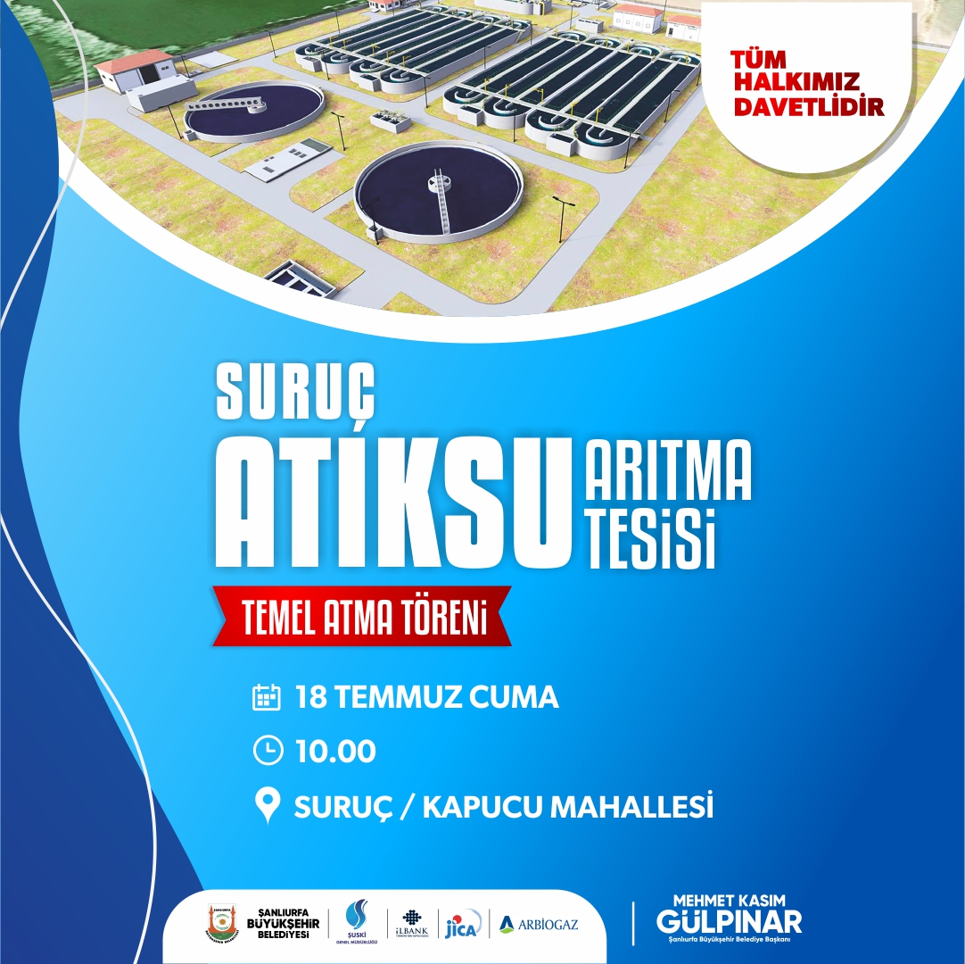 Şanlıurfa Su ve Kanalizasyon İdaresi (ŞUSKİ) Genel Müdürlüğü tarafından yürütülecek olan proje kapsamında, Suruç’a modern ve çevre dostu bir Atık Su Arıtma Tesisi kazandırılacak.