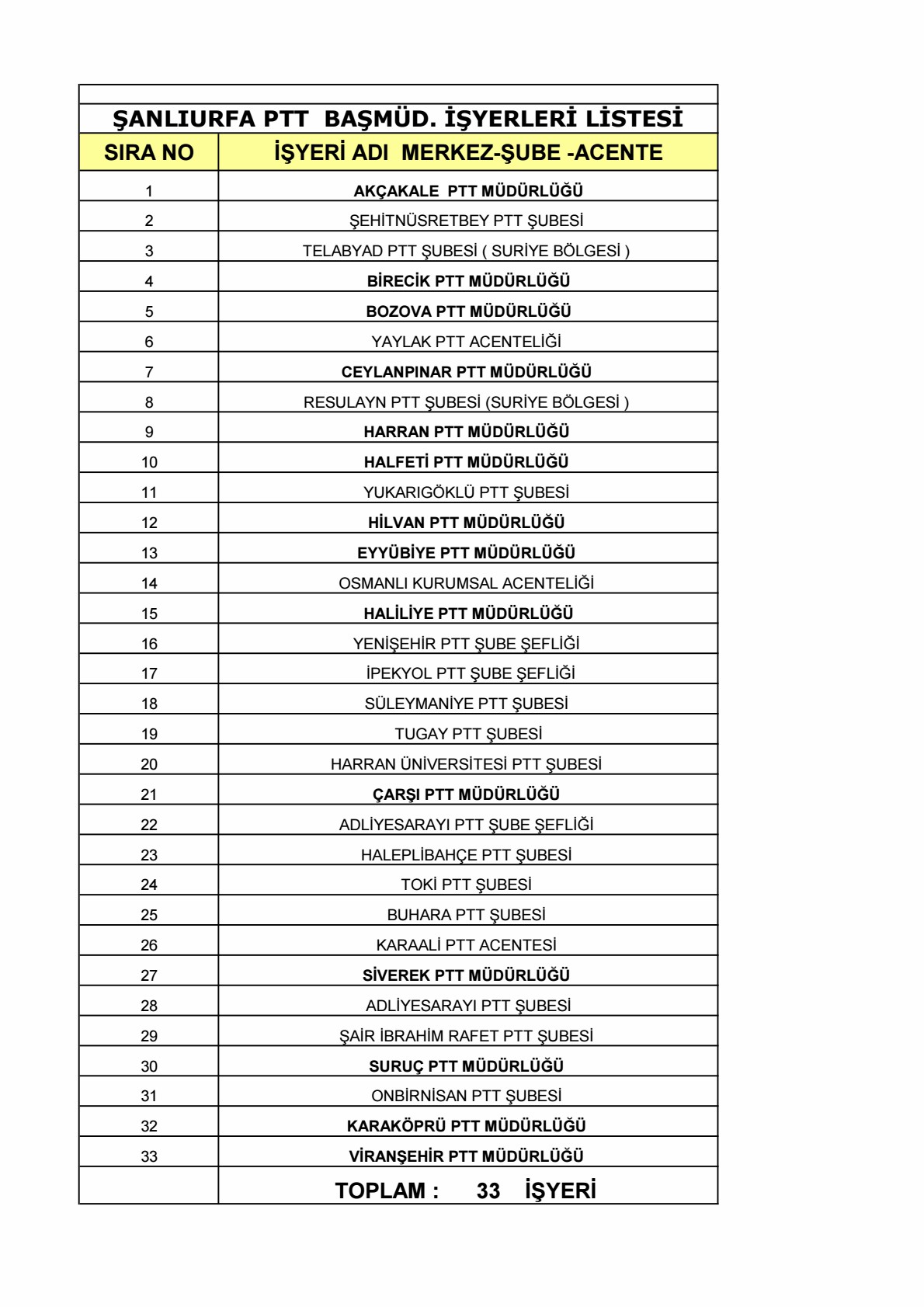 ŞANLIURFA İLİ ÖDEME NOKTALARI